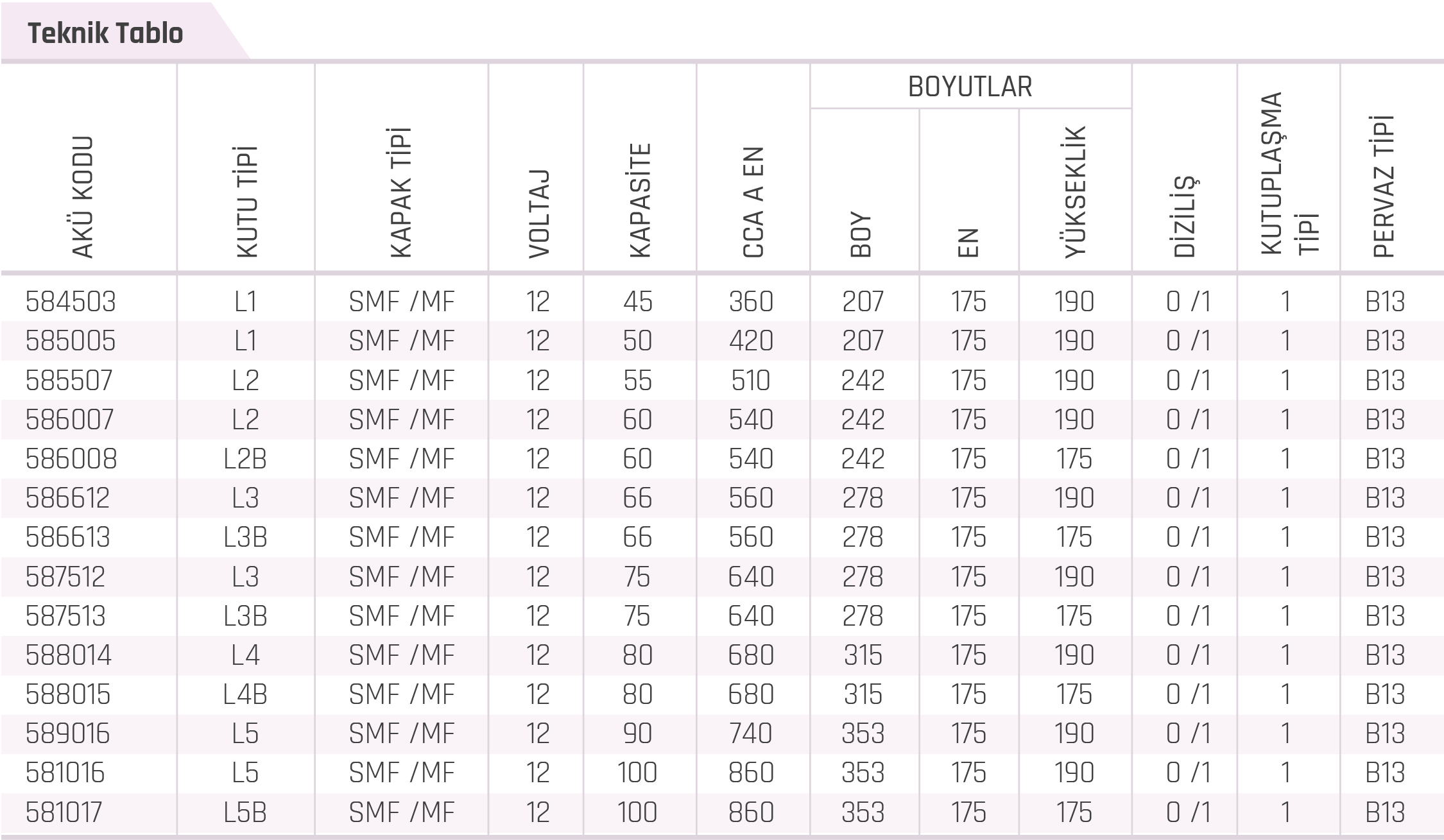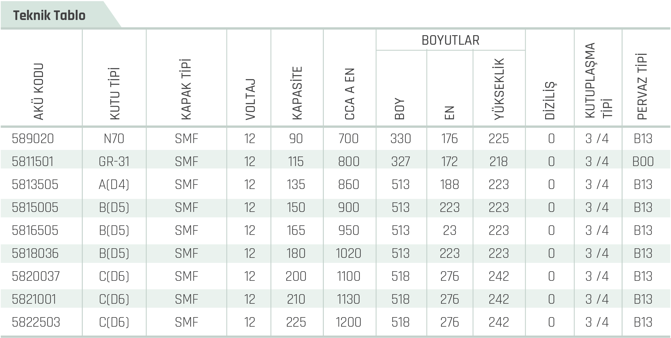 Aşağıdaki listeyi yana kaydırarak ihtiyacınıza uygun aküyü görüntüleyebilir ve akü hakkında daha fazla bilgi alabilirsiniz.